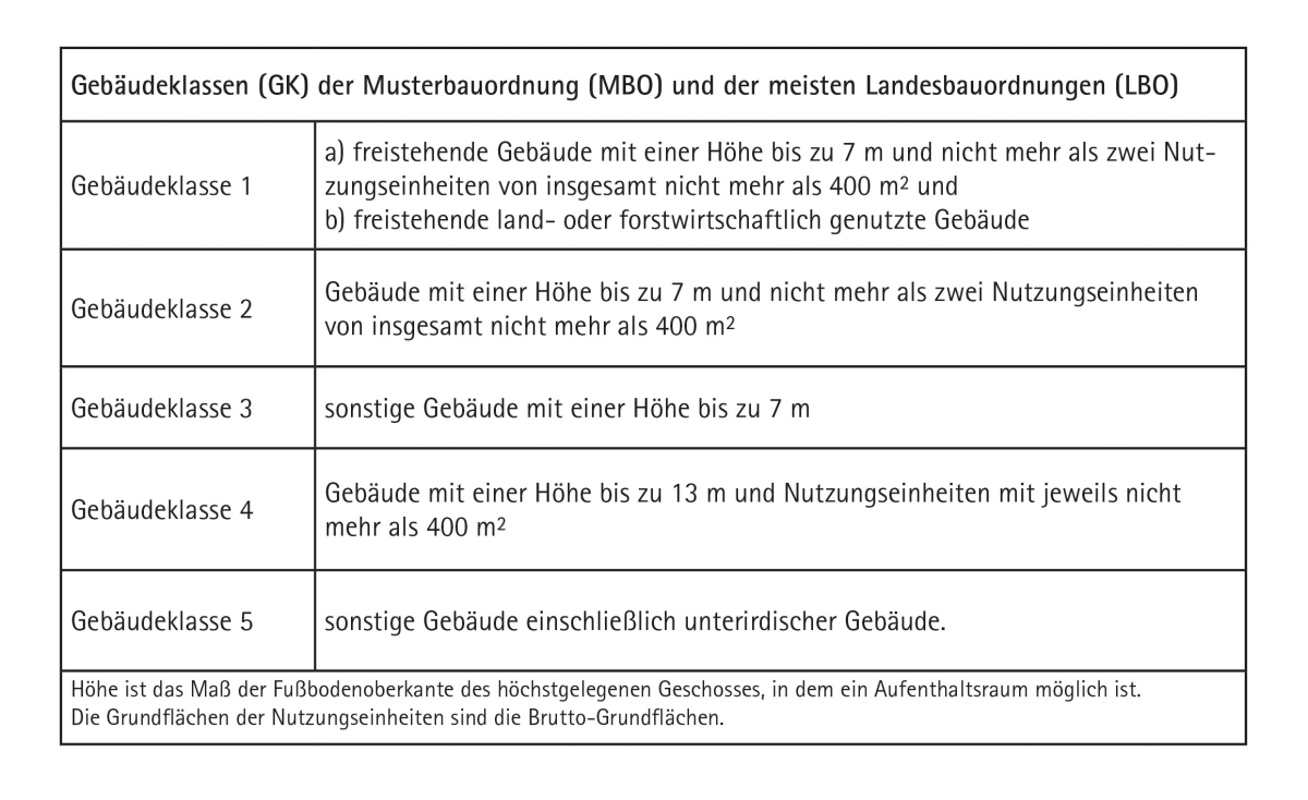 Die MBO und die LBO teilen Gebäude in unterschiedliche Gebäudeklassen ein. Dabei können die Vorgaben je nach Bundesland leicht variieren. Grundsätzlich gilt: Mit zunehmender Gebäudeklasse steigen auch die Anforderungen an den Brandschutz.