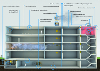 Leben retten durch Druckbelüftungsanlagen in HochhäusernEs ist ein Schreckensszenario wie im Kino, das man sich kaum vorstellen mag: Es brennt in einem Wolkenkratzer! Wie können Personen in einem Gebäude vor Feuer, Rauch und giftigen Gasen geschützt werden? Wie gelangen sie unversehrt nach draußen und wie die Feuerwehr samt Rettungsgerät schadlos hinein?