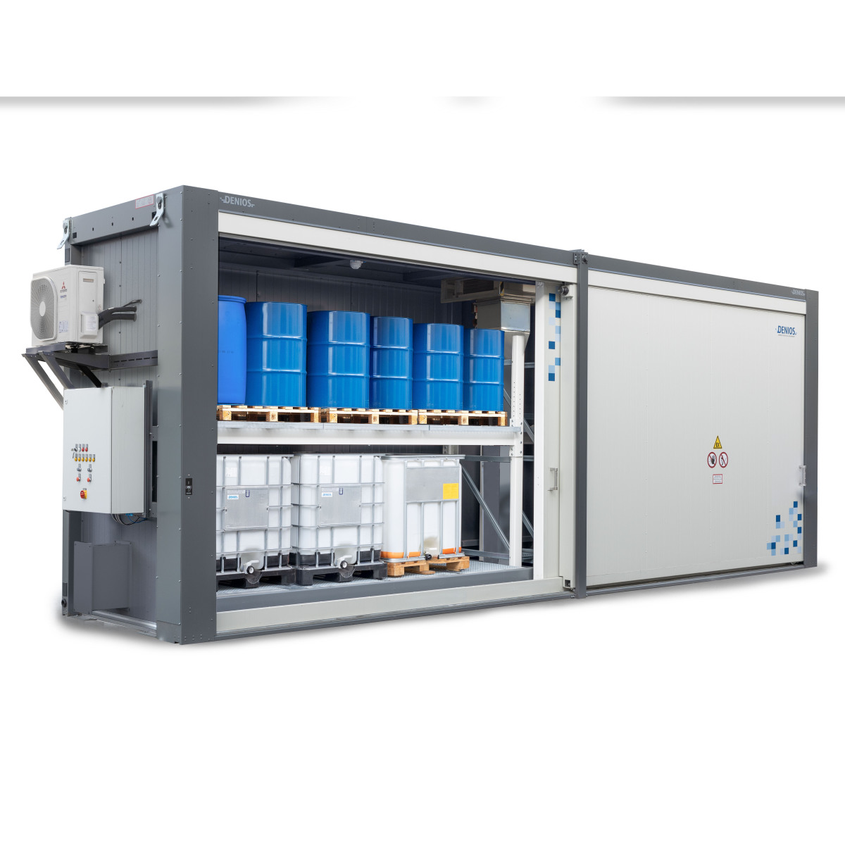 Maßgefertigte Gefahrstofflager in den unterschiedlichsten Größen und Ausführungen zur Lagerung von entzündlichen Stoffen gehören seit über 30 Jahren zur Kernkompetenz von DENIOS. Aus der Marktlage heraus resultieren unterschiedliche Anforderungen, die immer in die Entwicklung eines neuen DENIOS Produktes einfließen. In Sachen Brandschutz müssen Gefahrstofflager für Europa mindestens drei Klassifizierungen über 60, 90 und 120 Minuten erfüllen. Dazu zählen schlüsselfertige Brandschutzsysteme, die üblicherweise mit Flügeltüren ausgerüstet werden. Nachteile bei Flügeltüren ergeben sich häufig in der Anwendung im Außenbereich, wo z. B. mit Windlasten oder beengten Platzverhältnissen zu rechnen ist.