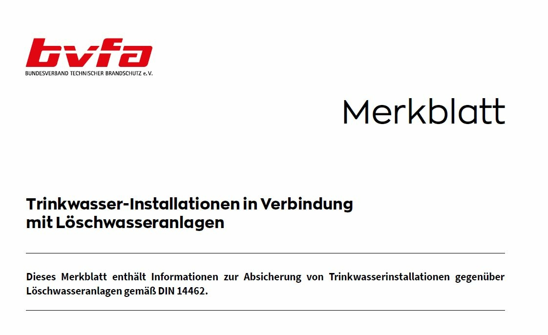Das Merkblatt „Sanierung vorhandener Trinkwasser-Installationen in Verbindung mit Löschwasseranlagen im Bestand“ weist auf die gestiegenen Hygieneanforderungen von Trinkwasserinstallationen hin und die damit gegebenenfalls erforderliche Sanierung von Wandhydranten bzw. Über- und Unterflurhydranten. Zur Erfüllung der Trinkwasserverordnung dürfen diese nicht ohne eine geeignete Sicherungseinrichtung angeschlossen werden. Außerdem muss in allen Leitungsteilen ein ausreichender Wasseraustausch sichergestellt sein. Bei nicht erfüllten Hygieneanforderungen erlischt der Bestandsschutz bei Trinkwasserinstallation. Es werden mehrere Alternativen zur Vorgehensweise beschrieben.
