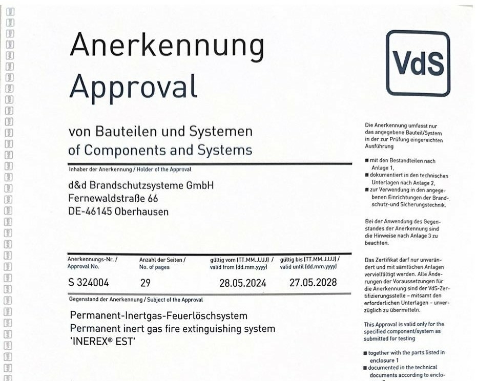 d & d Brandschutzsysteme erhält VdS-Zertifizierung für „INEREX EST“