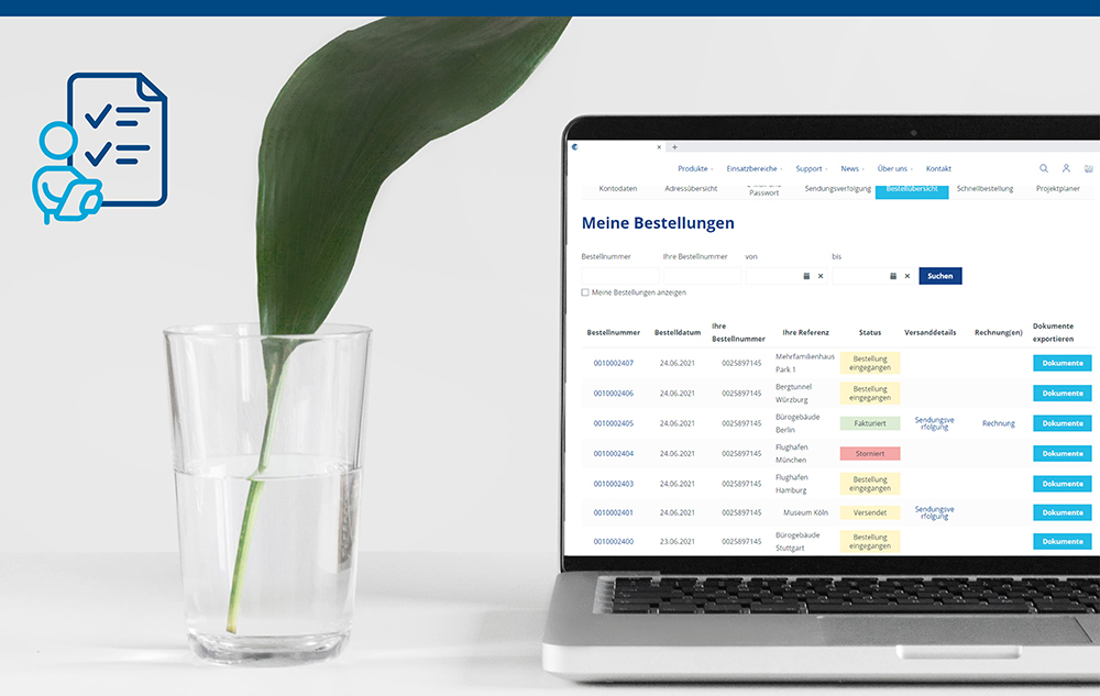 Das Portal bietet zudem weitere hilfreiche Funktionen. Neu ist die Möglichkeit, die aktuelle Verfügbarkeit und Preise der Produkte einzusehen, sowie die Sendung in Echtzeit nachzuverfolgen. In der übersichtlichen Bestellhistorie können alle Bestellungen und deren Status eingesehen werden. Die Auflistung beinhaltet sowohl offene als auch bereits gelieferte Aufträge ‒ auch solche, die nicht über den Webshop, sondern beispielsweise per E-Mail getätigt wurden.
