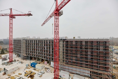 Mit einer Bruttogeschossfläche von ca. 50.000 qm entsteht zurzeit in Rostock einer der größten Holzmodulbauten Europas: der neue Hochschulcampus der Bundes-zollverwaltung. Das zentrale Hochschulgebäude sowie zwei siebengeschossige Wohneinheiten bestehen überwiegend aus industriell vorgefertigten Holzmodulen. Eine Systemlösung zur Abschottung der haustechnischen Leitungen gewährleistet den bei dieser Bauweise geforderten Brandschutz. Dreh- und Angelpunkt ist dabei das Conlit Brandschutzsystem aus nichtbrennbarer Steinwolle.